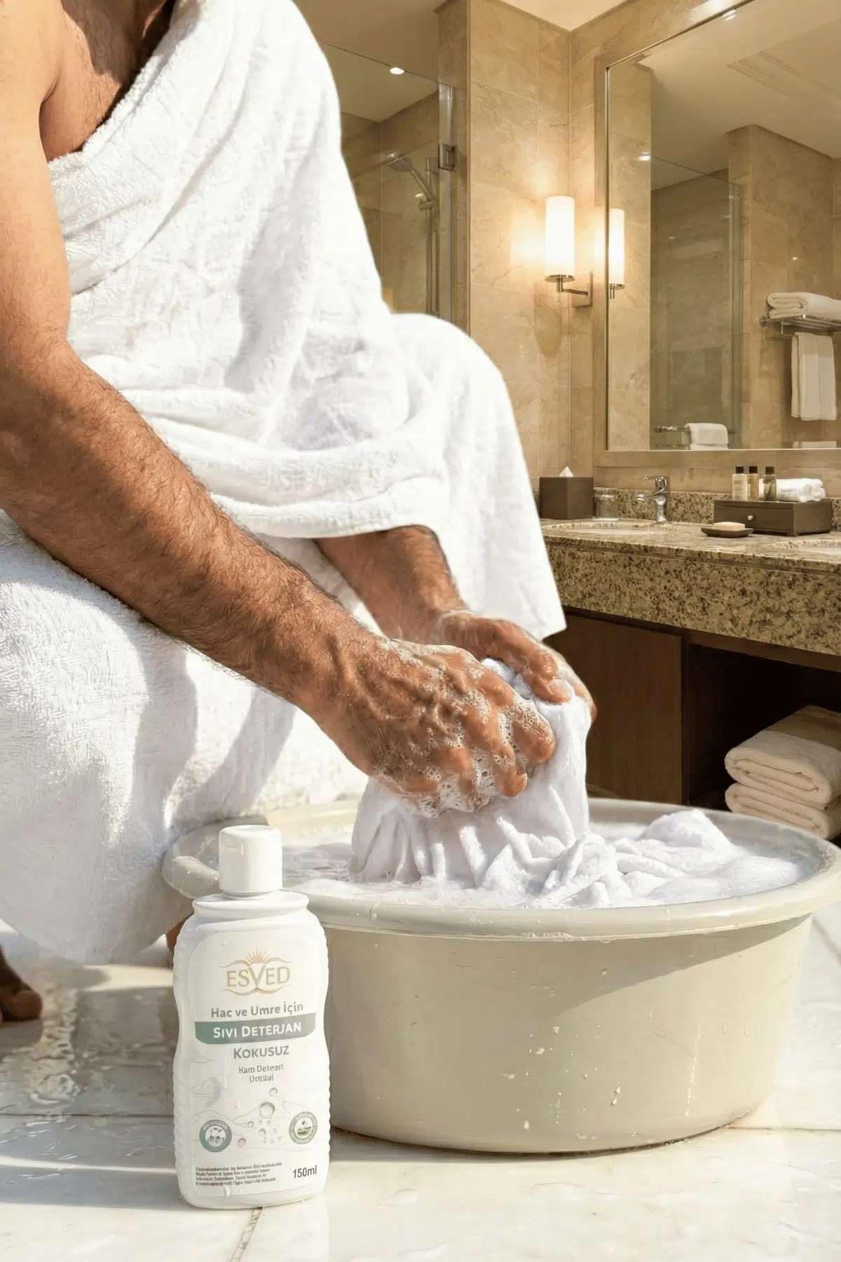 Esved Kokusuz Sıvı Deterjan, hac ve umre ziyaretlerinde ihram ve kişisel eşyaların temizliği için Türkiye’de ilk kez özel olarak üretilmiş pratik bir temizlik ürünüdür. Tamamen kokusuz yapısı sayesinde ihram kullanımına uygundur ve ince kumaşlarda güvenle kullanılabilir.