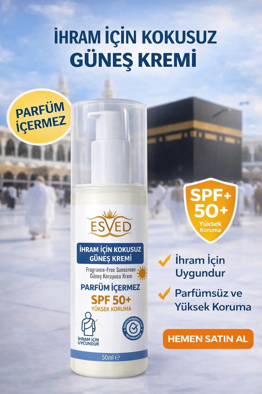 ESVED İhram İçin Kokusuz Güneş Kremi SPF 50+ – 50 ml